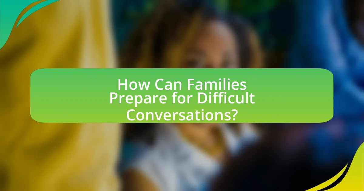 Families can prepare for difficult conversations by establishing a safe and respectful environment for open dialogue. This involves setting aside dedicated time for discussion, ensuring all members feel heard, and agreeing on ground rules to maintain respect and focus. Research indicates that families who engage in regular, structured communication are better equipped to handle challenging topics, as they build trust and understanding over time. For instance, a study published in the Journal of Family Communication highlights that families practicing active listening and empathy during discussions report higher satisfaction in their relationships.